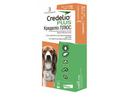 Таблетки Credelio Plus (Кределіо Плюс) від бліх та кліщів та гельмінтів для собак 5.5-11 кг 3 шт.
